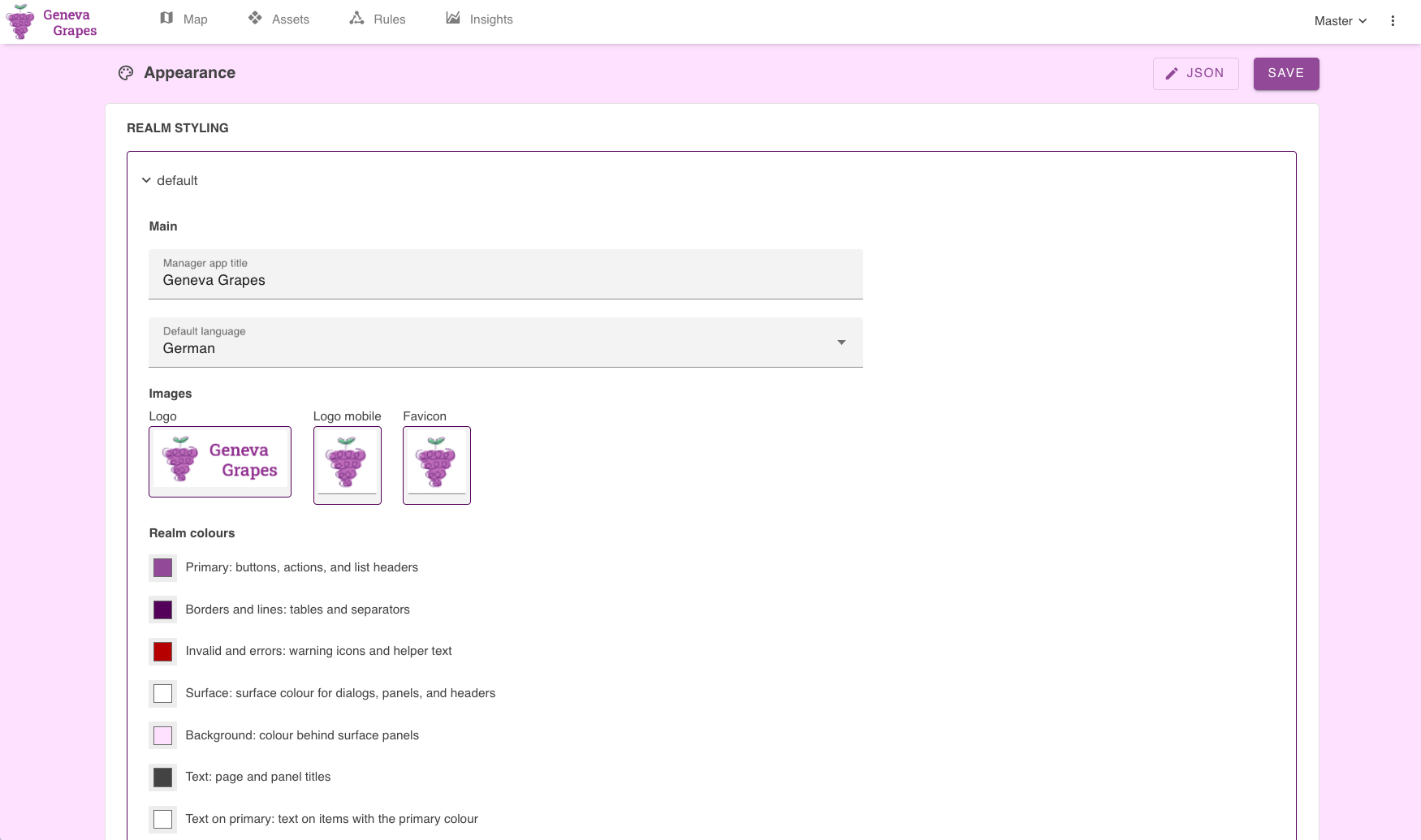 You can restyle any realm in OpenRemote as well as adjust the map views (go to settings/appearance). You can change the logo's, use different colours, change the title and default language, or set and change the menu items. For adding map layers you can add GeoJSON files (created e.g. with https://geojson.io/). More advanced settings like visible asset and agent types on the asset and rules page, can be configured directly in a JSON file. For the options available in the JSON file and an example, check out Configuring the Manager UI. For the maps you can set the centerpoint, zoom levels and boundaries.