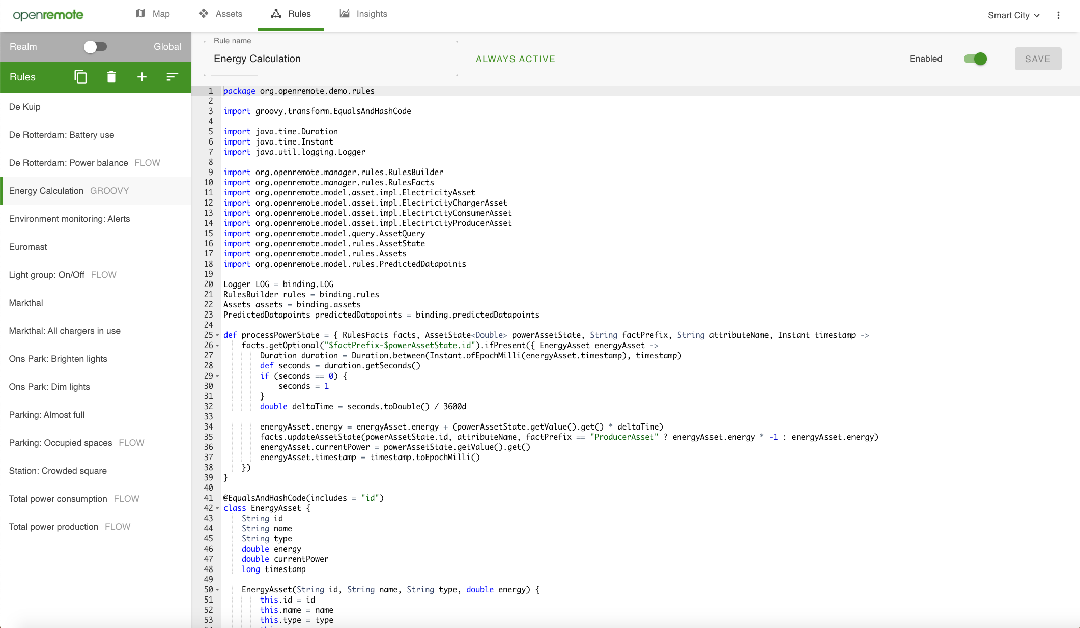 As an admin user of the system who can access all realms, you have the option to select 'Global' versus 'Realm' rules. Global rules allow you to use When-Then and Groovy rules that can access assets across realms. Realm users can only use Realm rules which are a part of their realm and can only access attributes within that realm.
