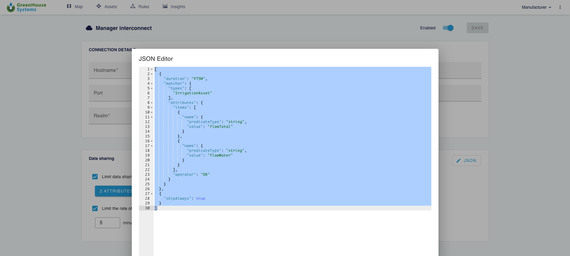 Figure 15. Next to interconnecting you can choose which asset attributes are actually linked as well as the rate at which data is exchanged.