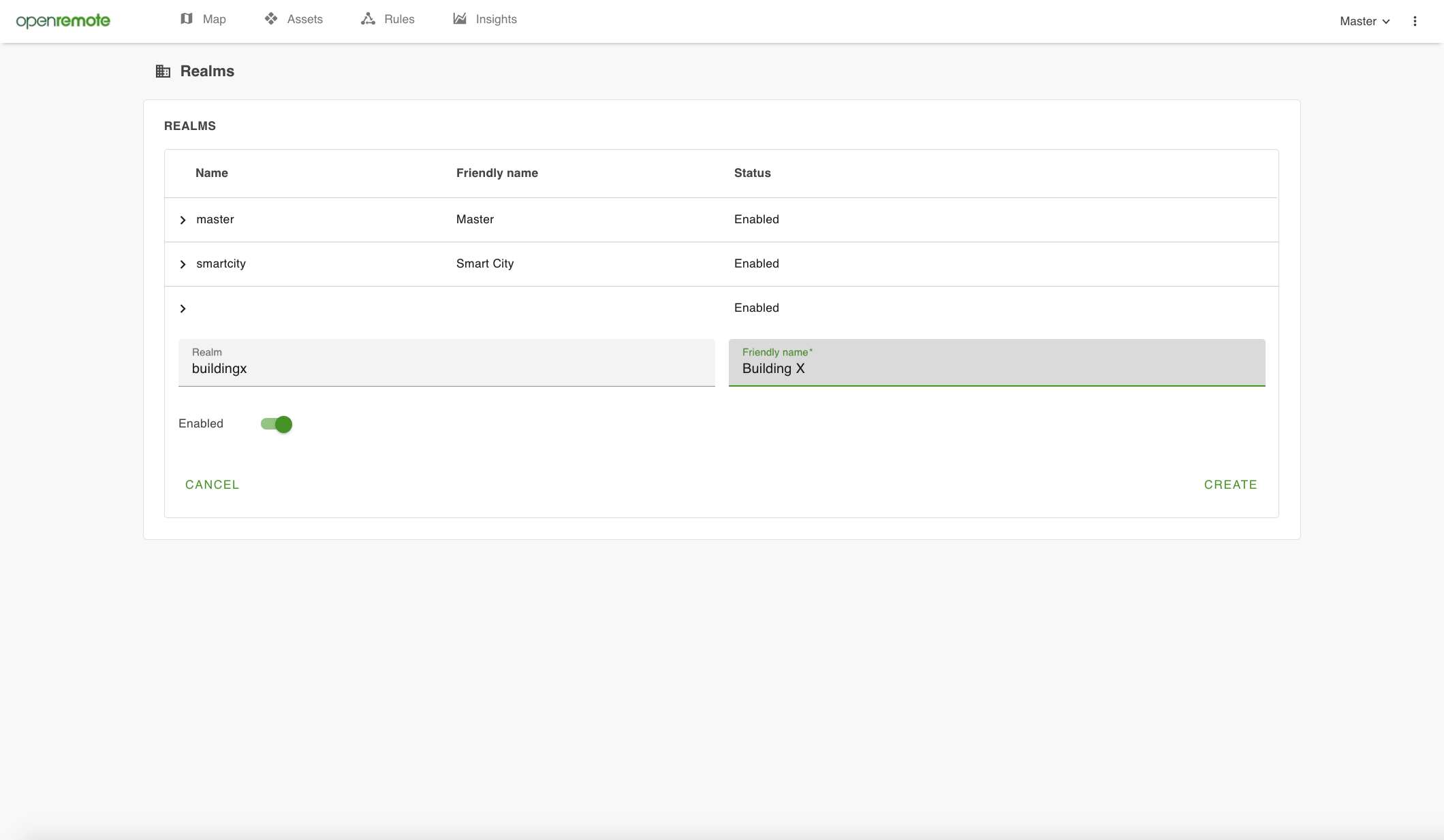 Figure 21. Realms can be created to manage multiple independent projects within one OpenRemote instance